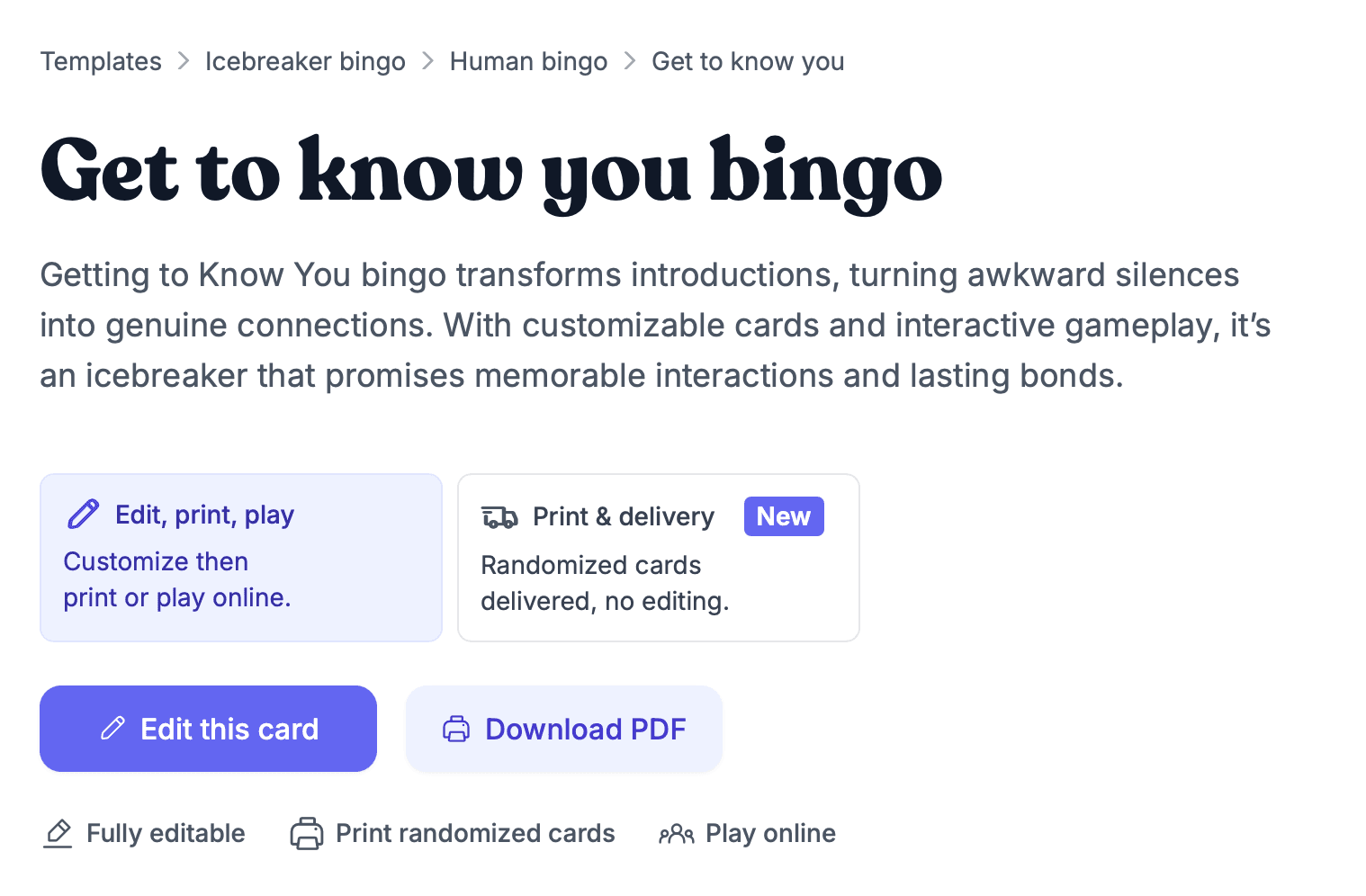 At Bingo Card Creator, we’re focused on making your bingo games smoother and more enjoyable. Our new card delivery feature does just that. With high-quality, customizable bingo cards delivered directly to your door, you can bypass the hassle of preparation and enjoy your events even more. Happy playing!