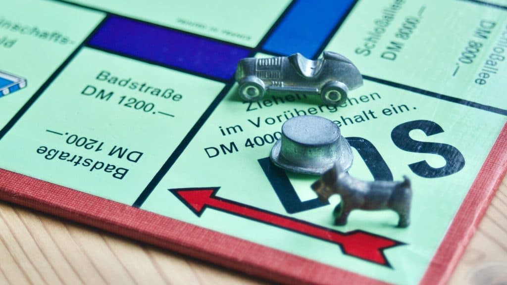 Players move around the board, buying or trading properties, building houses, and collecting rent. The last person not bankrupted wins.
